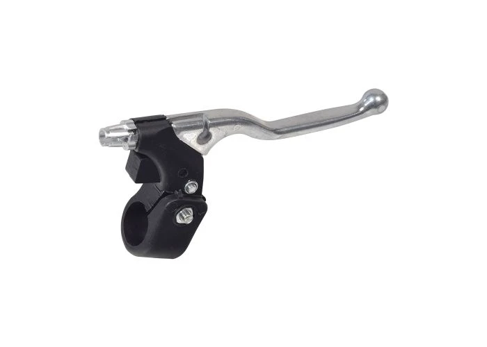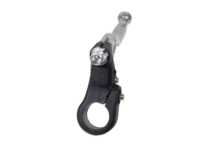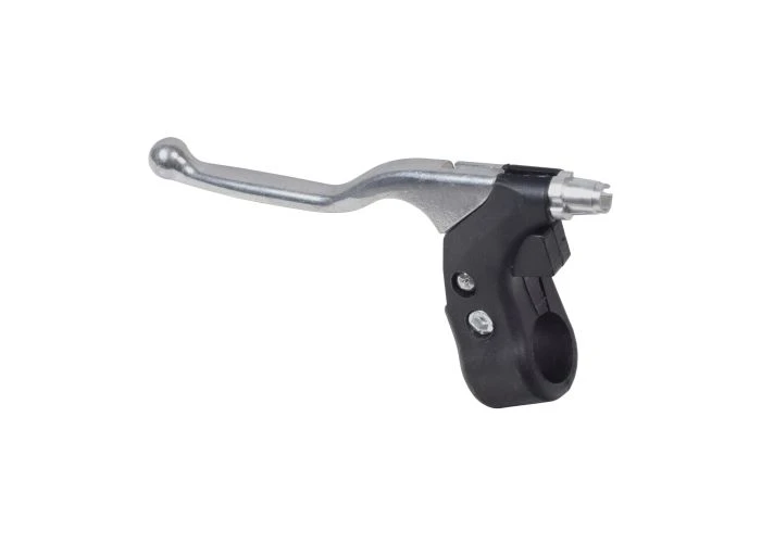 Polished aluminum brake lever with black plastic body and built-in return spring